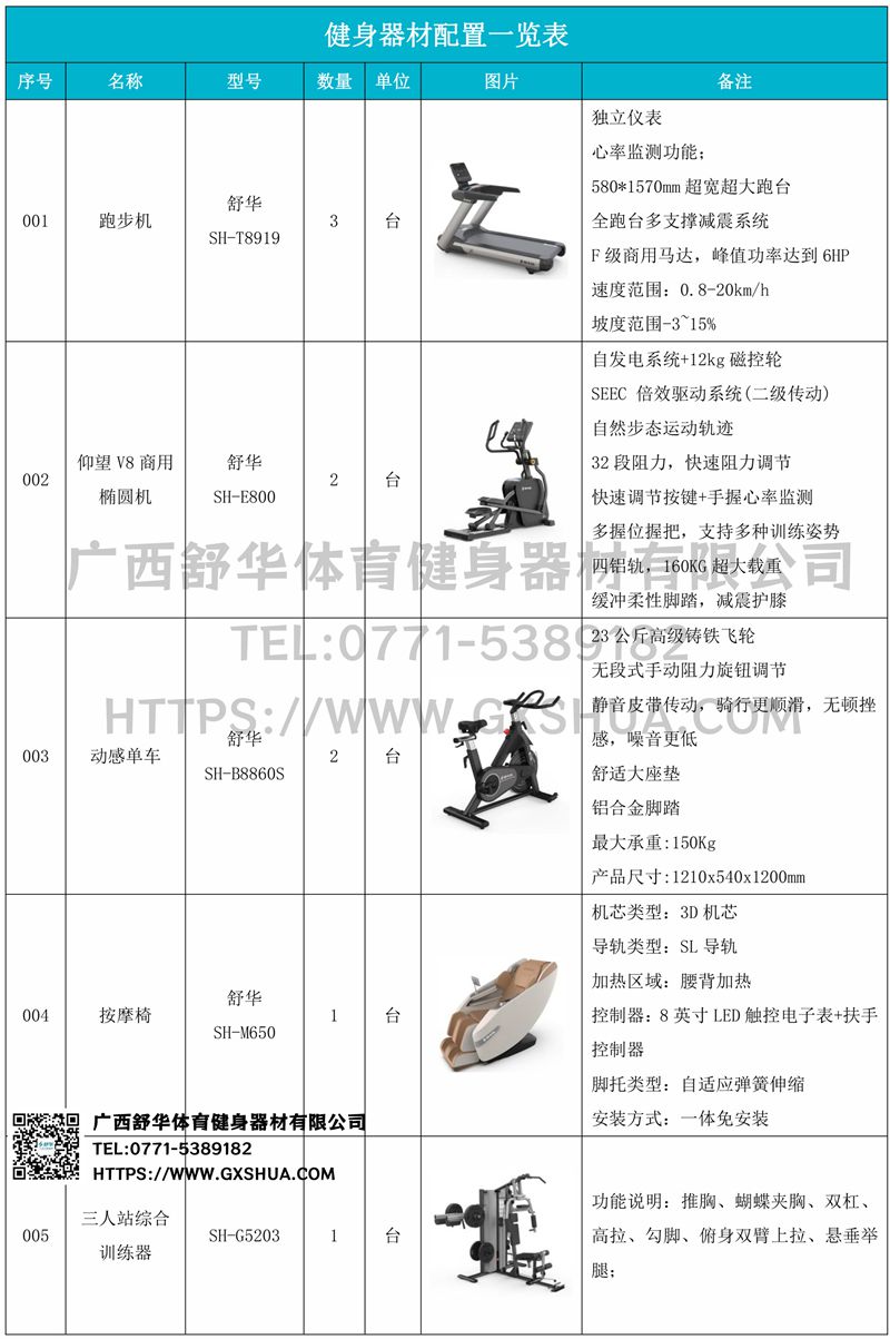 史密斯机(1台)、多重可调节练习椅(1台)、腹肌板(1台)、10付哑铃套组(1套)、哑铃凳(1台)、可以实现对不同肌肉群的针对性训练,满足肌肉训练需求,全方位激活身体机能。